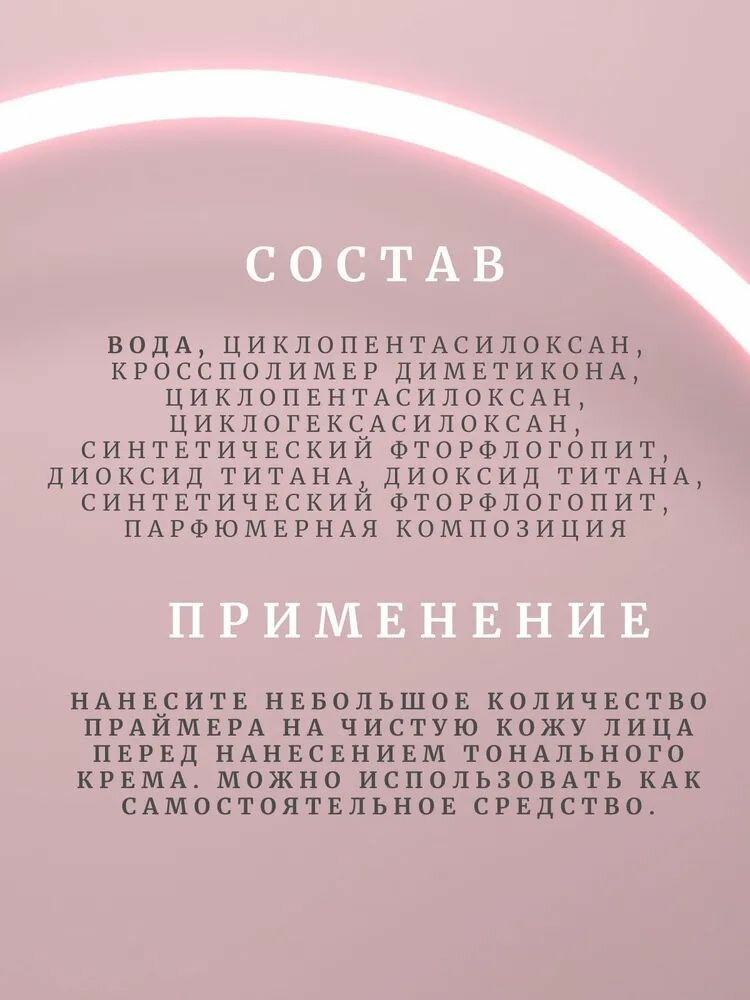 | Способ применения | нанесите небольшое количество праймера на чистую кожу лица перед нанесением тонального крема |