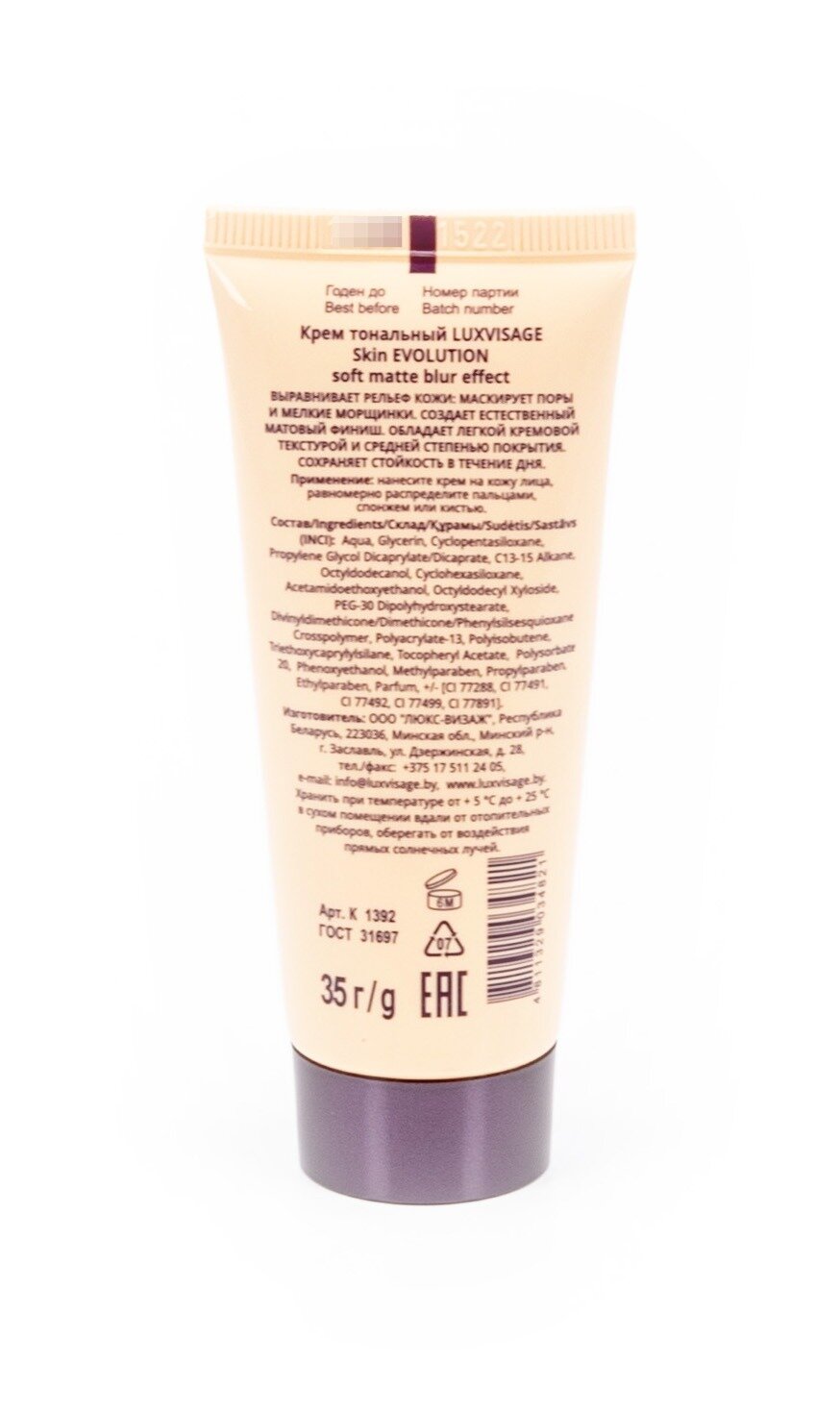 LUXVISAGE Крем тональный для лица SKIN EVOLUTION FOUNDATION Soft Matte Blur Effect тон 35 Warm Beige