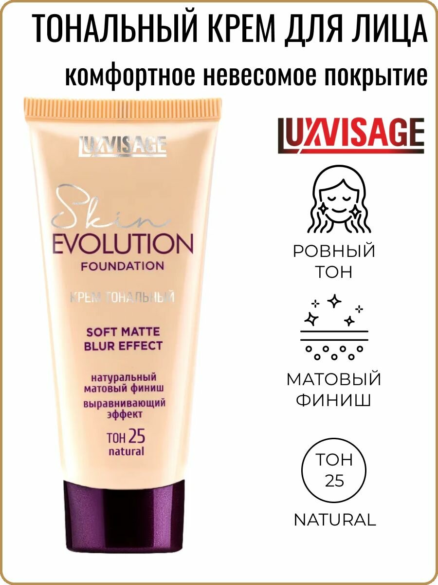 LUXVISAGE Крем тональный для лица SKIN EVOLUTION FOUNDATION Soft Matte Blur Effect тон 25 Natural
