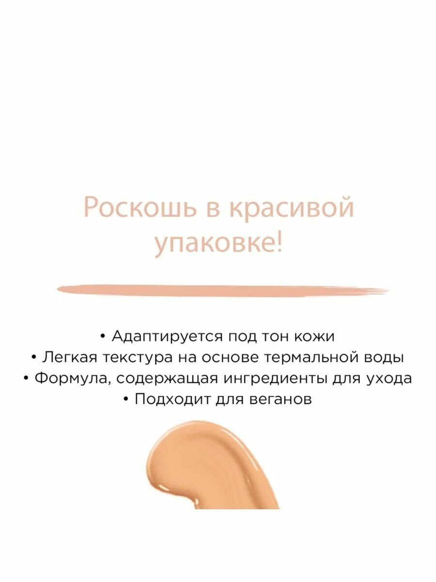 | Дополнительная информация | Инновационная тональная основа имеет натуральный сатиновый финиш, а ее уникальная формула с термальной водой и гиалуроновой кислотой не только ухаживает и увлажняет кожу, но и защищает ее микробиом. |