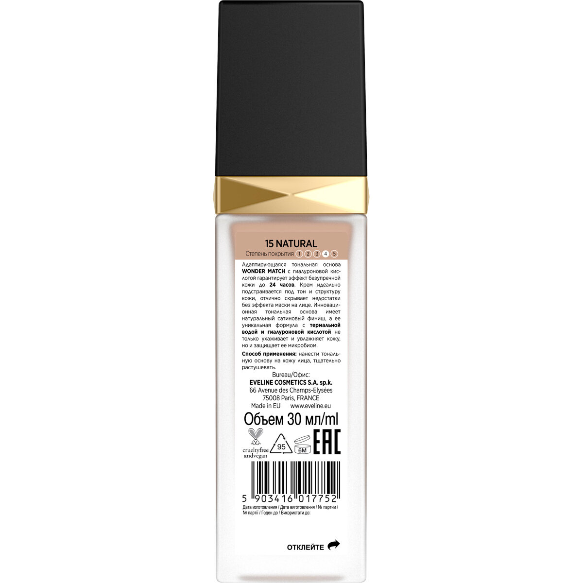 Адаптирующаяся тональная основа EVELINE WONDER MATCH тон 15 Natural, 30мл