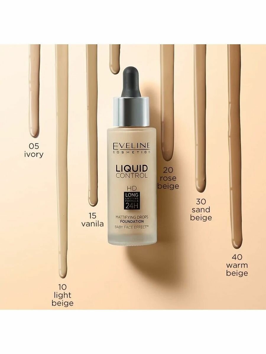 Купить Тональная основа Eveline Liquid Control, инновационная, жидкая, 010, light beige, 32 мл