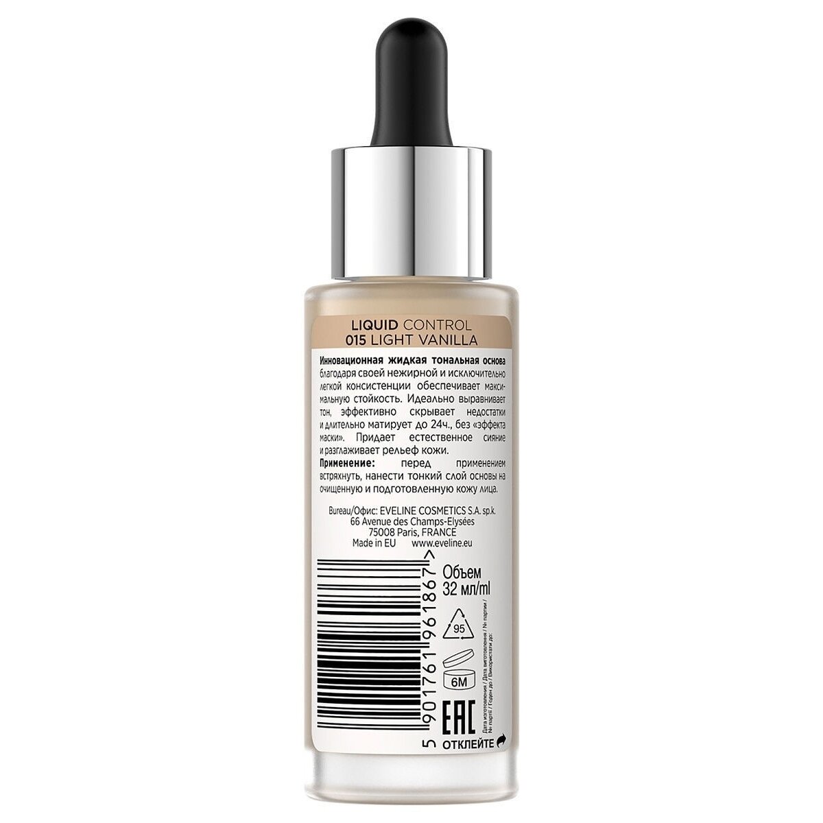 Купить EVELINE Инновационная жидкая тональная основа LIQUID CONTROL № 015 LIGHT VANILLA
