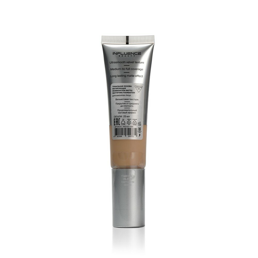 INFLUENCE BEAUTY Тональная основа для лица Skinnovation I Matte матирующая, 25 мл, 04 Темно-бежевый