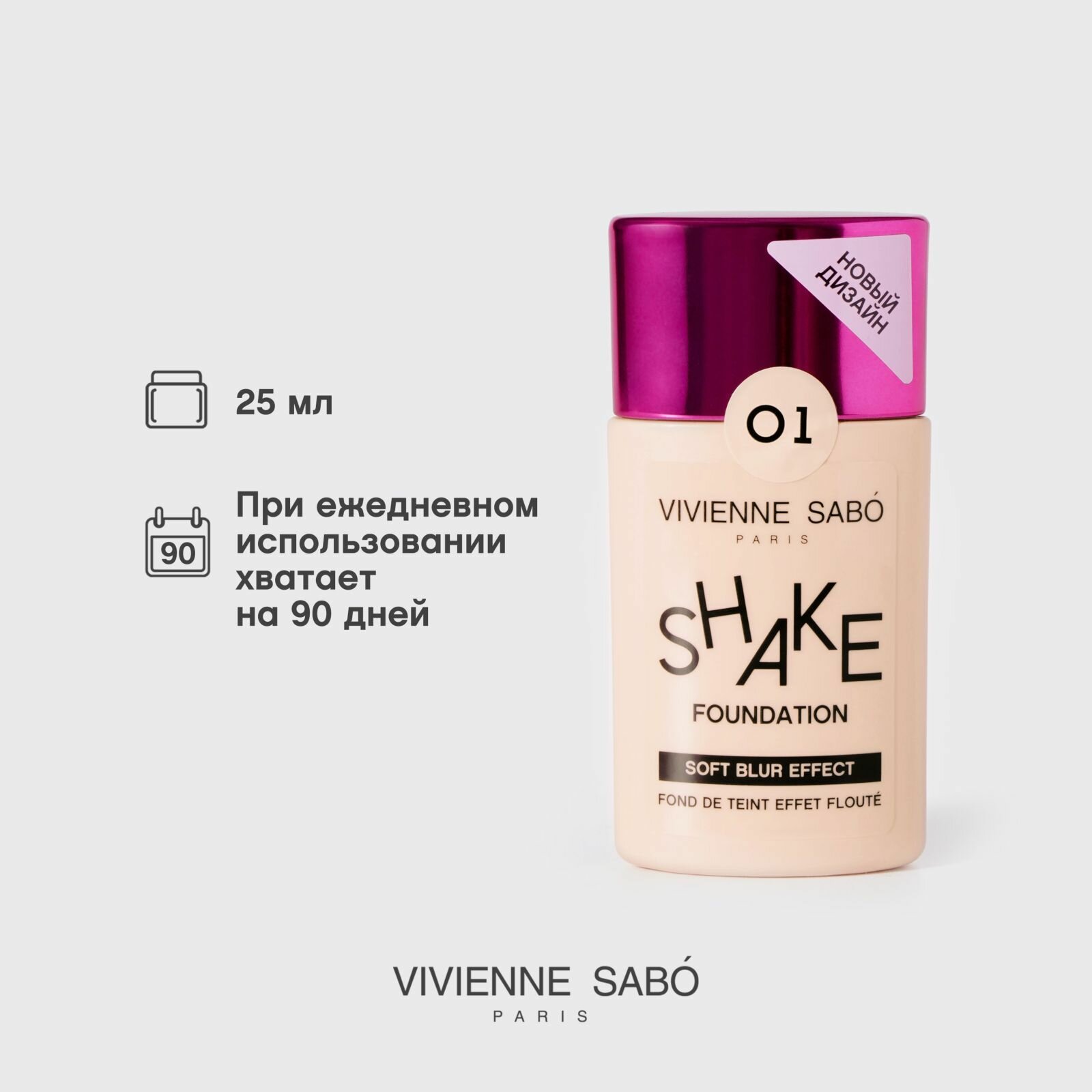 VIVIENNE SABO Тональный крем с натуральным блюр эффектом Shakefoundation, 25 г, 01 Светло-бежевый