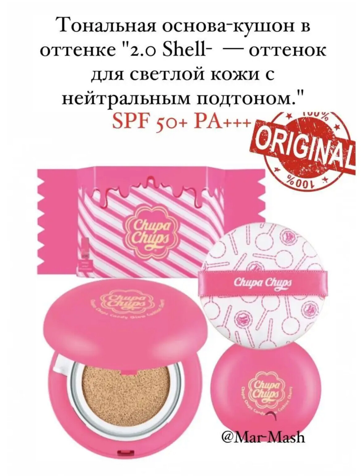 СохранитьТональная основа-кушон Chupa Chups оттенок 2.0 Shell интересное: