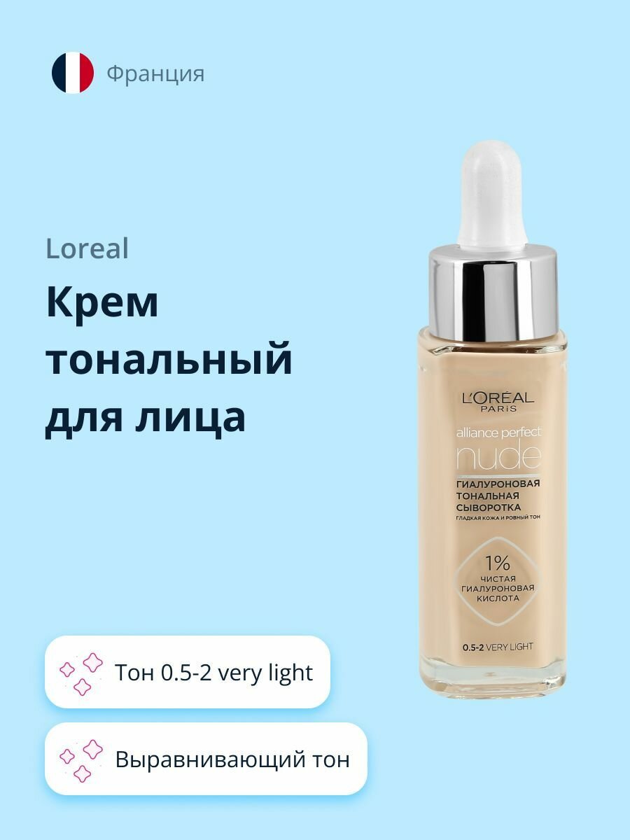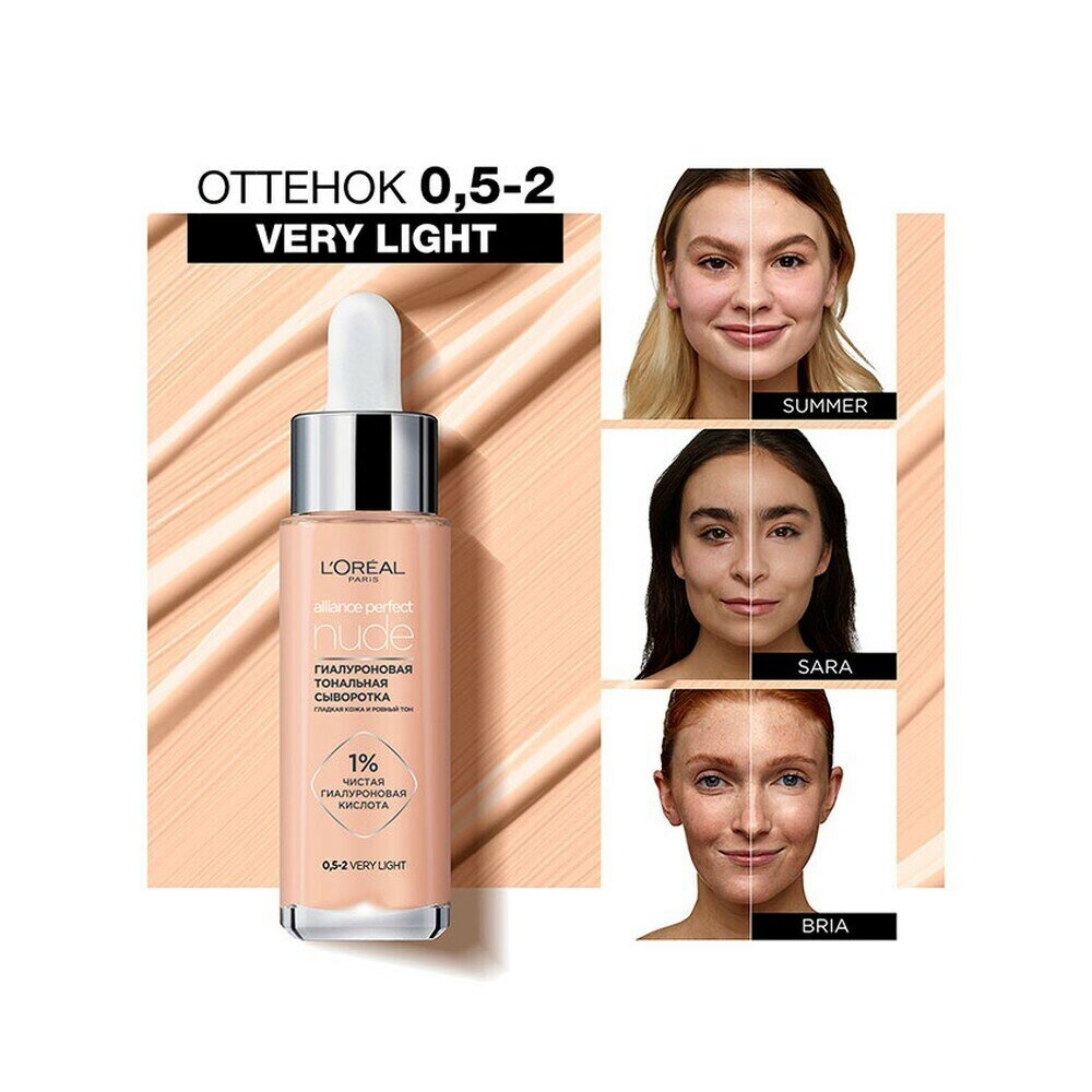 L'OREAL Тональная сыворотка для лица гиалуроновая Alliance Perfect Nude, 30 мл, Very light интересное: