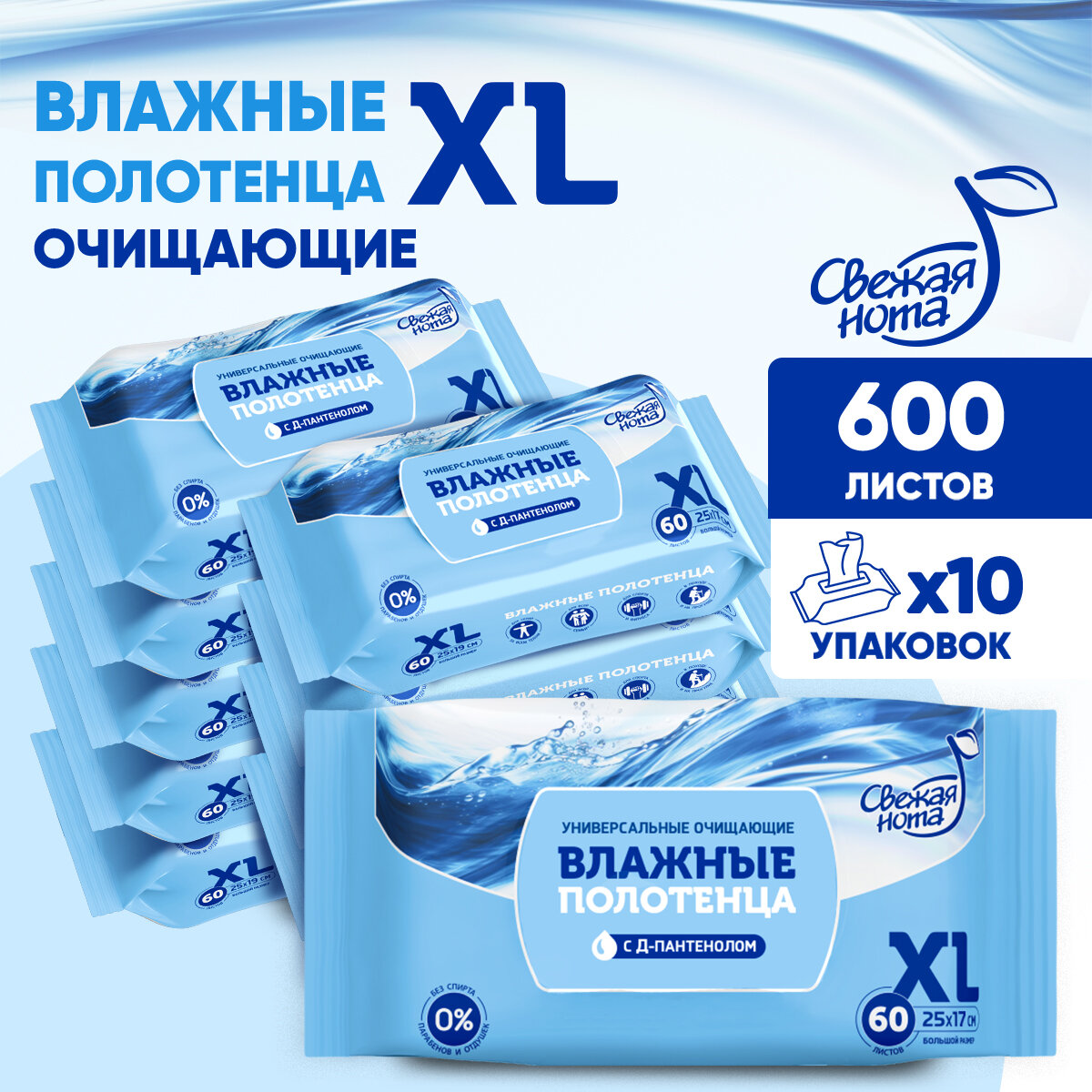 Свежая нота Влажные полотенца большого размера XL универсальные очищающие для всей семьи, 240 шт. (60х4)