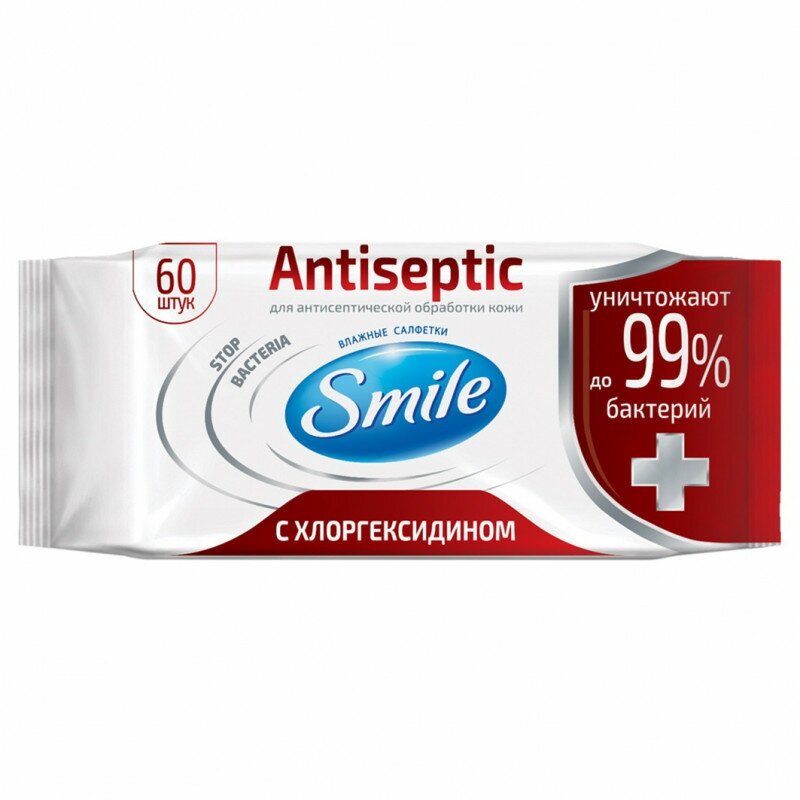 СохранитьСалфетки влажные антибактериальные, антисептические с хлоргексидином SMILE W Antiseptic 60 штучные интересное: