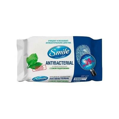 Купить Smile Влажные салфетки, Antibacterial, С соком подорожника, 60 штук