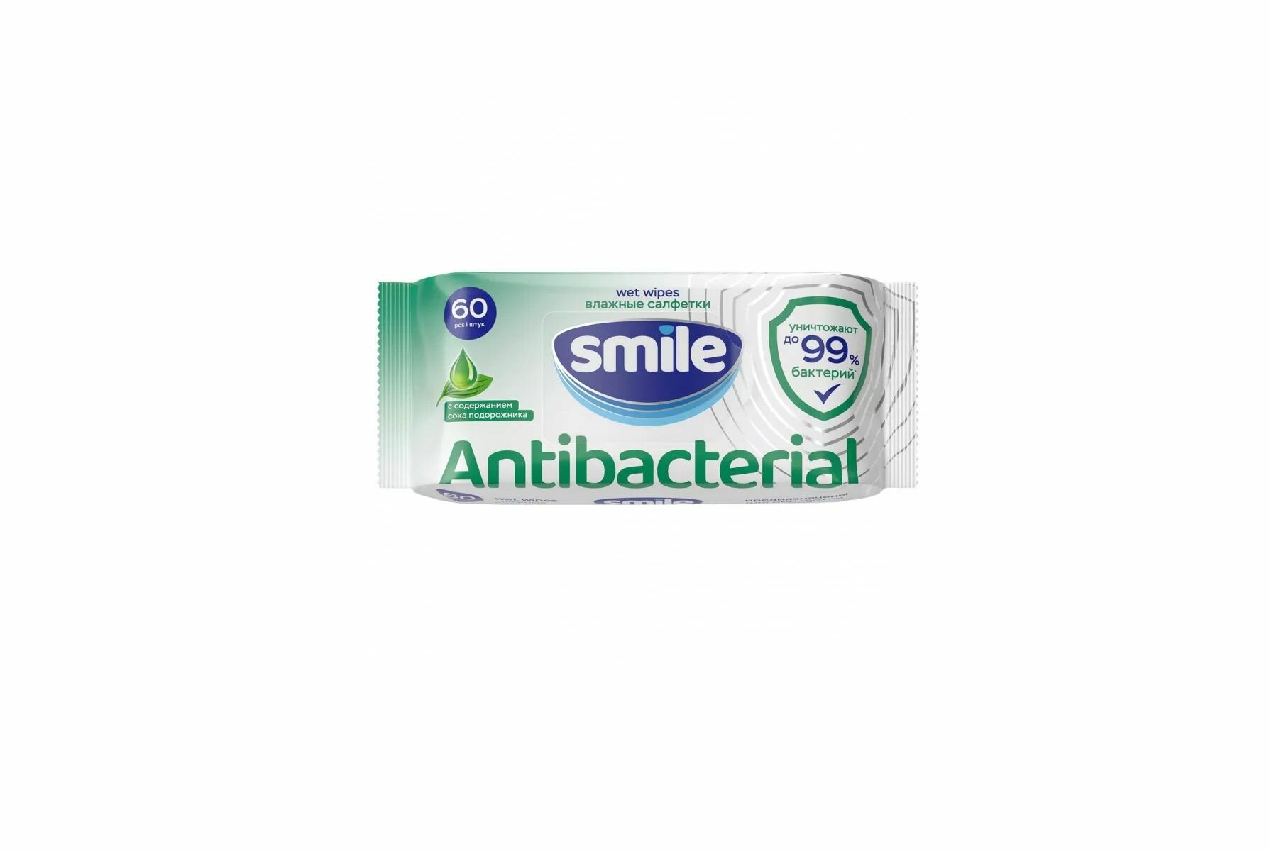 Влажная салфетка SMILE W Antibacterial с подорожником 60 шт 4211271042112730 14410153 12