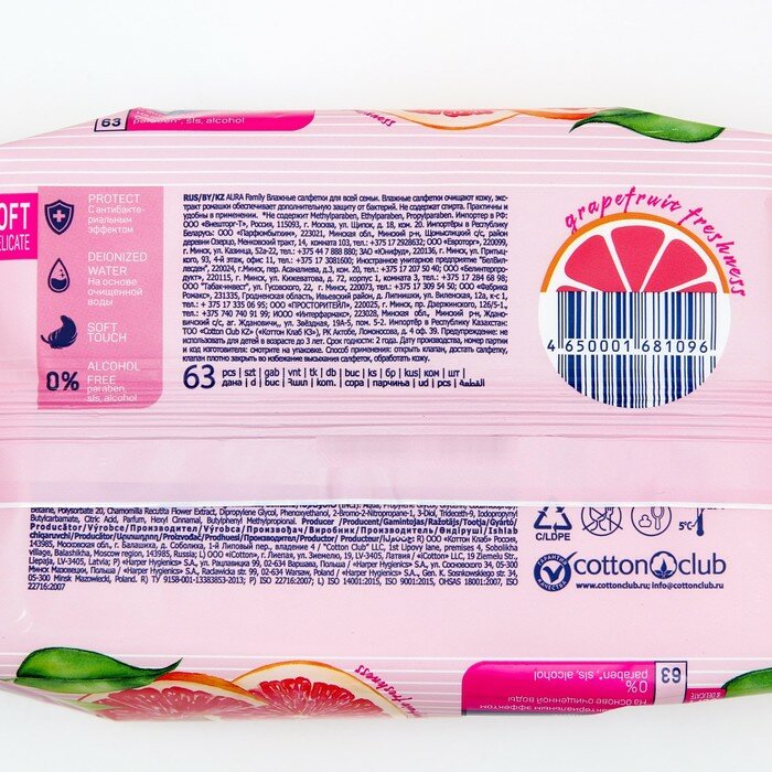 Влажные салфетки Aura, освежающие для всей семьи, 63 шт. интересное: