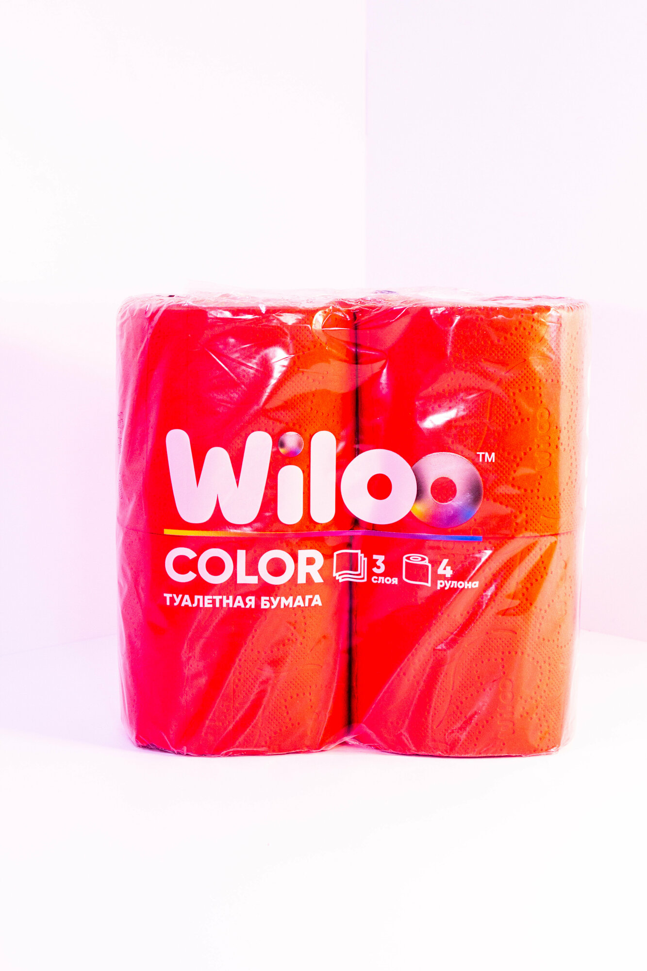 Туалетная бумага Wiloo, красная трёхслойная с перфорацией , 4 рулона