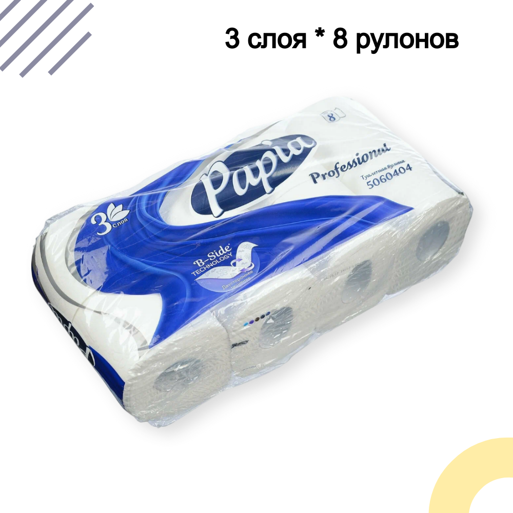 Туалетная бумага Papia "Professional", трёхслойная, без запаха, 140 листов, 8 рулонов