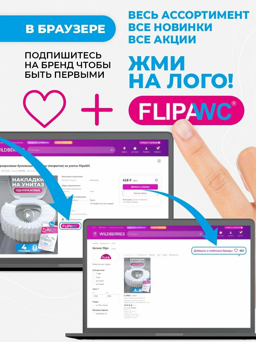Накладки на унитаз FlipaWC одноразовые, биоразлагаемые, смываемые, 10 пачек по 2 шт
