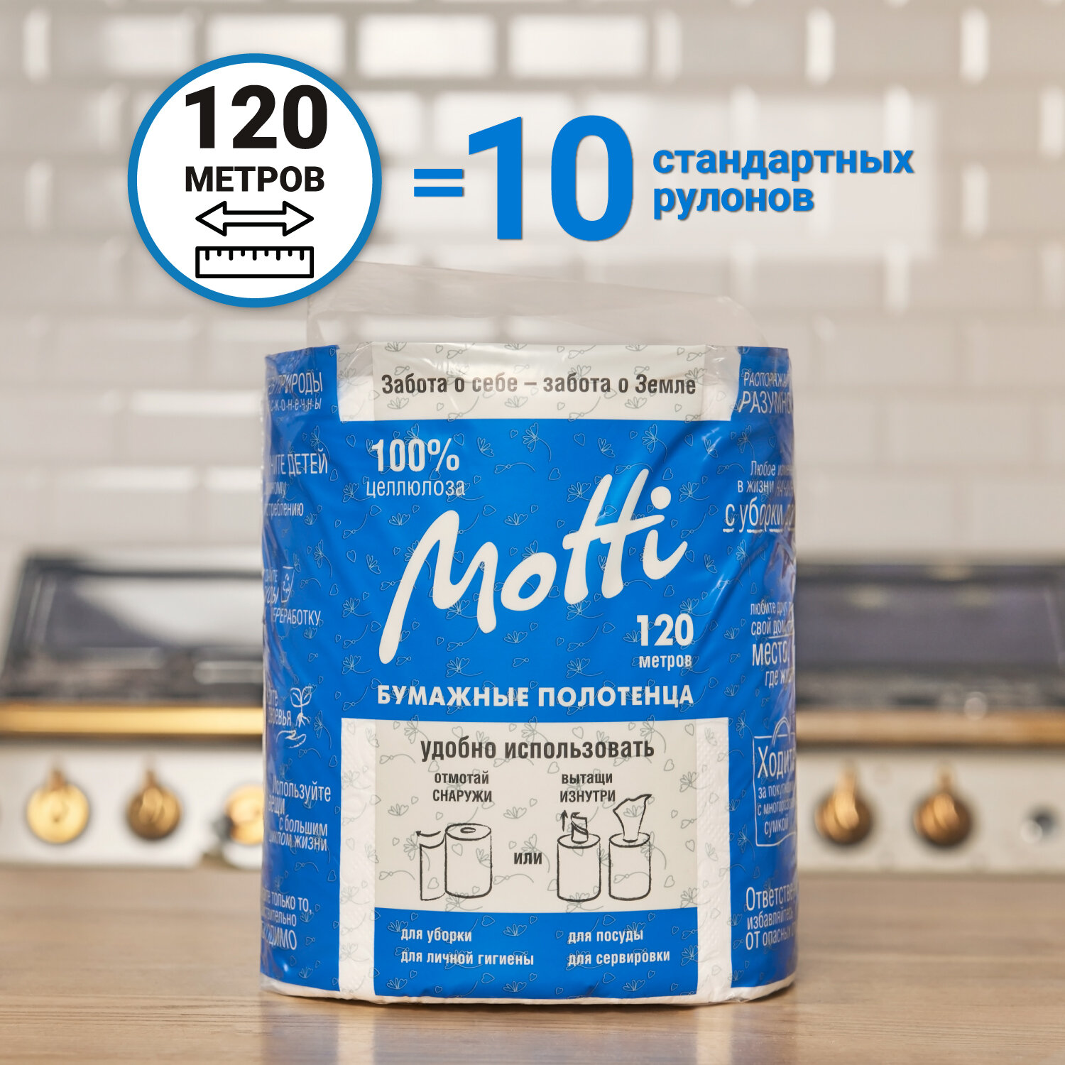 Бумажные полотенца в рулоне для кухни и диспенсера MOTTI 2-сл, 120 м, 545 листов, белые интересное: