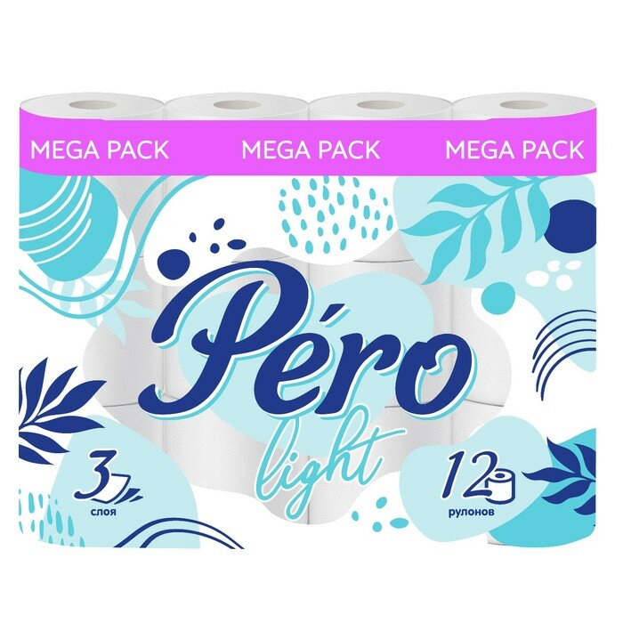 Туалетная бумага Pero Light, белая, трехслойная, 1 упаковка, 12 штук в упаковке