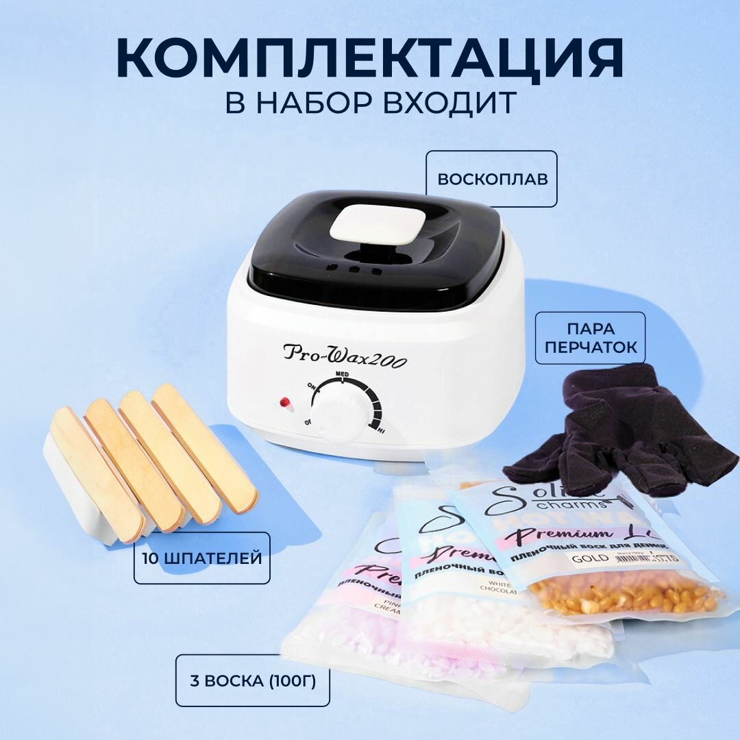 | В комплекте | Баночный воскоплав-1шт; Воск гранулы 100гр-3шт; Перчатки - 1пара; Шпатели-10шт; |