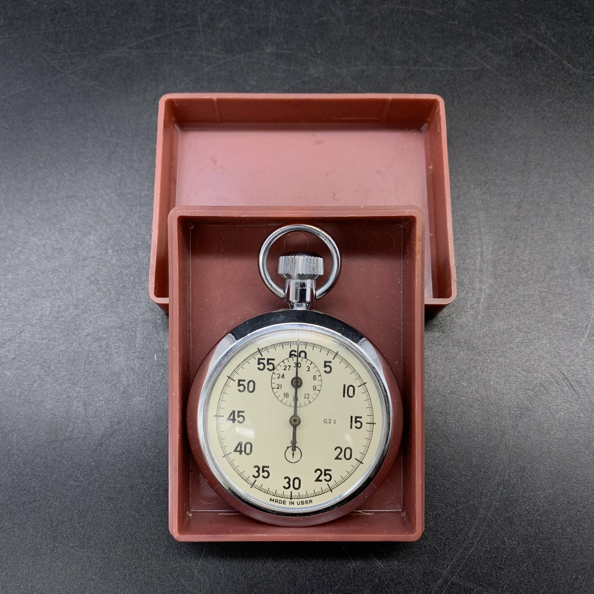 Купить Секундомер механический в коробке (не работает), металл, пластик, стекло, СССР