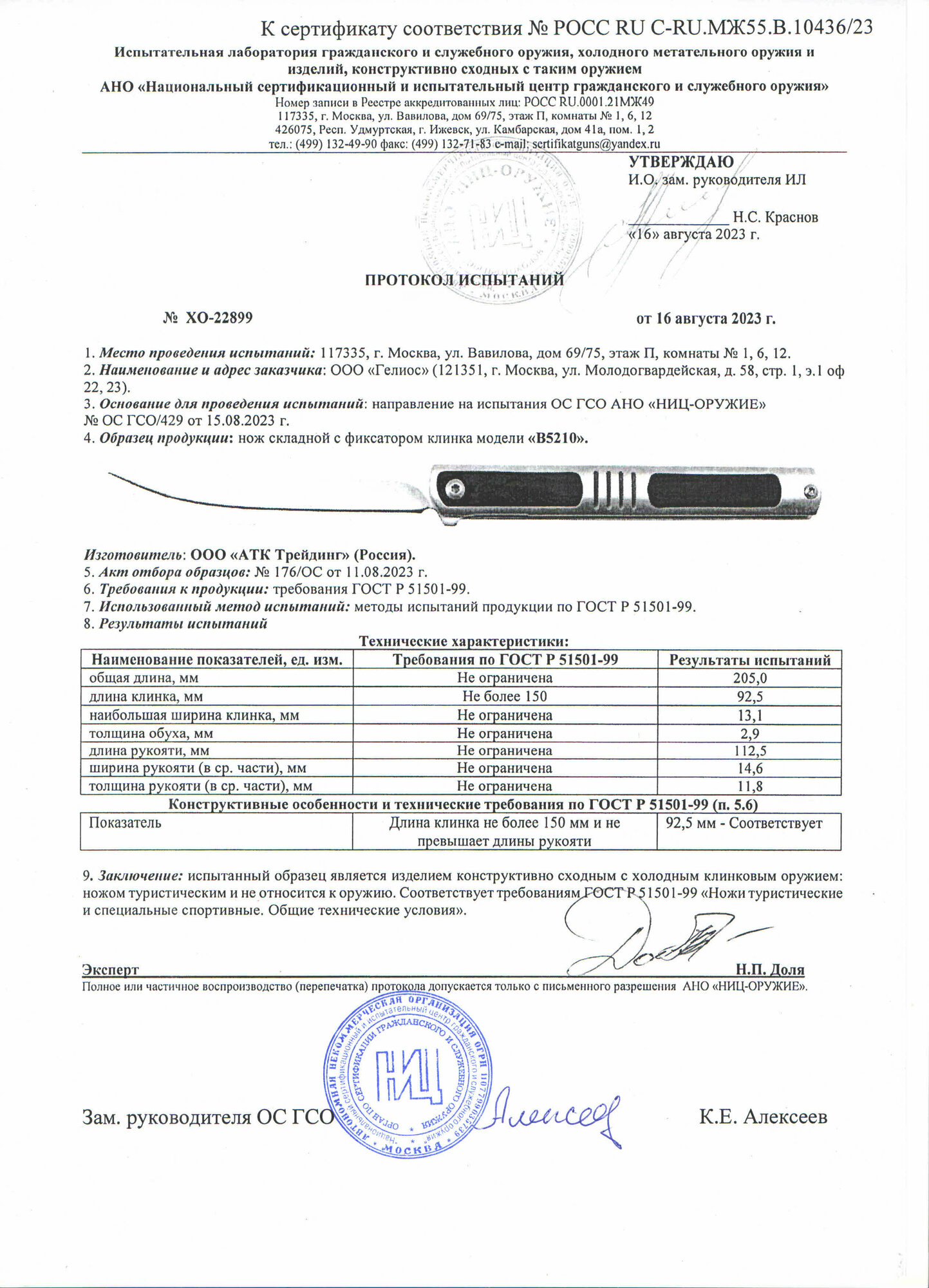 | Характеристики ножа | |
