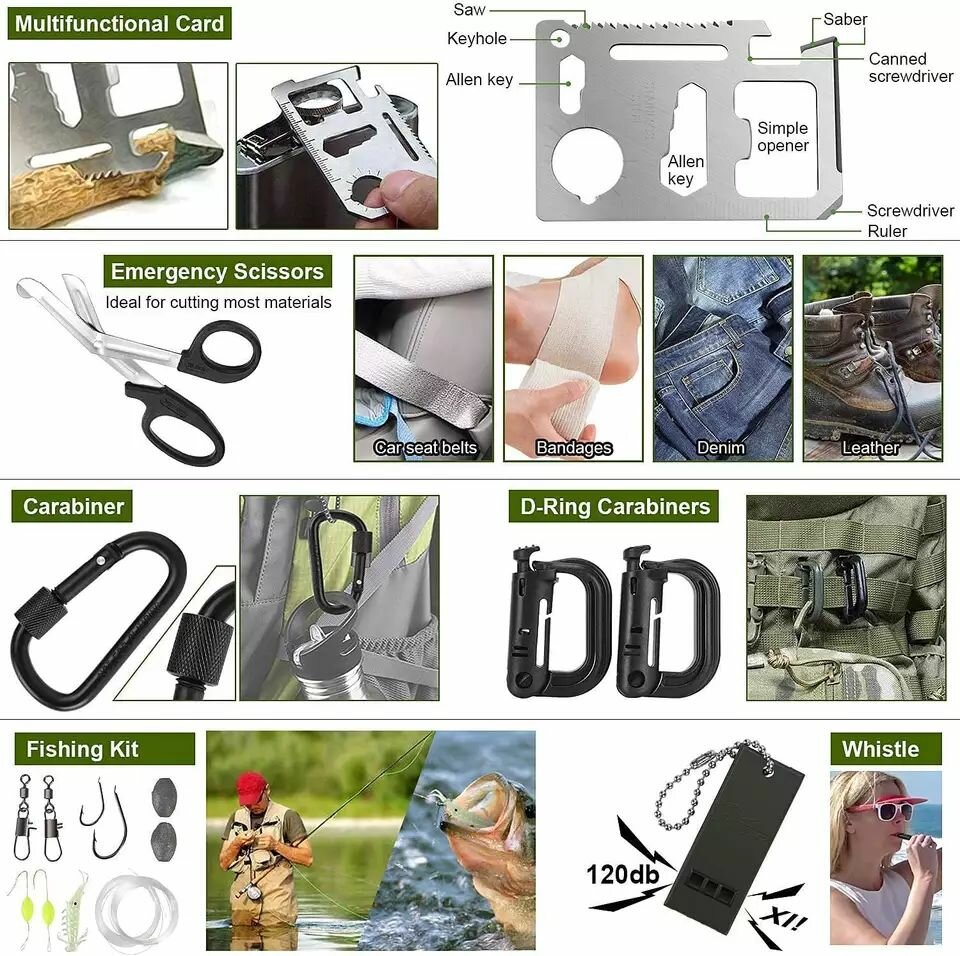 Купить Тревожный тактический военный рюкзак для выживания 31 предмет / Комплект мультитул, спортивный походный туристический мужской набор для туризма и походов