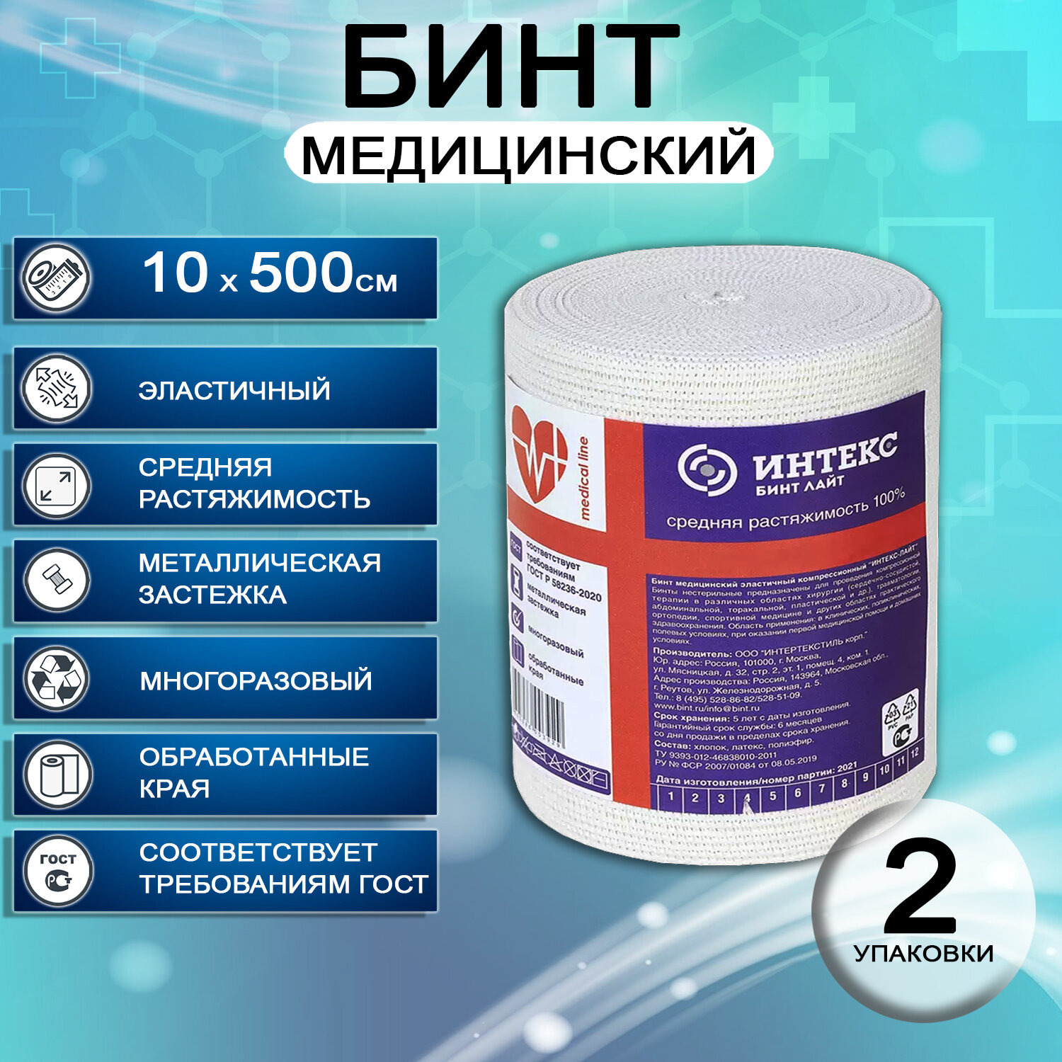 Бинт эластичный компрессионный интекс-лайт 10см х 5м средней растяжимости с застежкой, 2 штуки интересное: