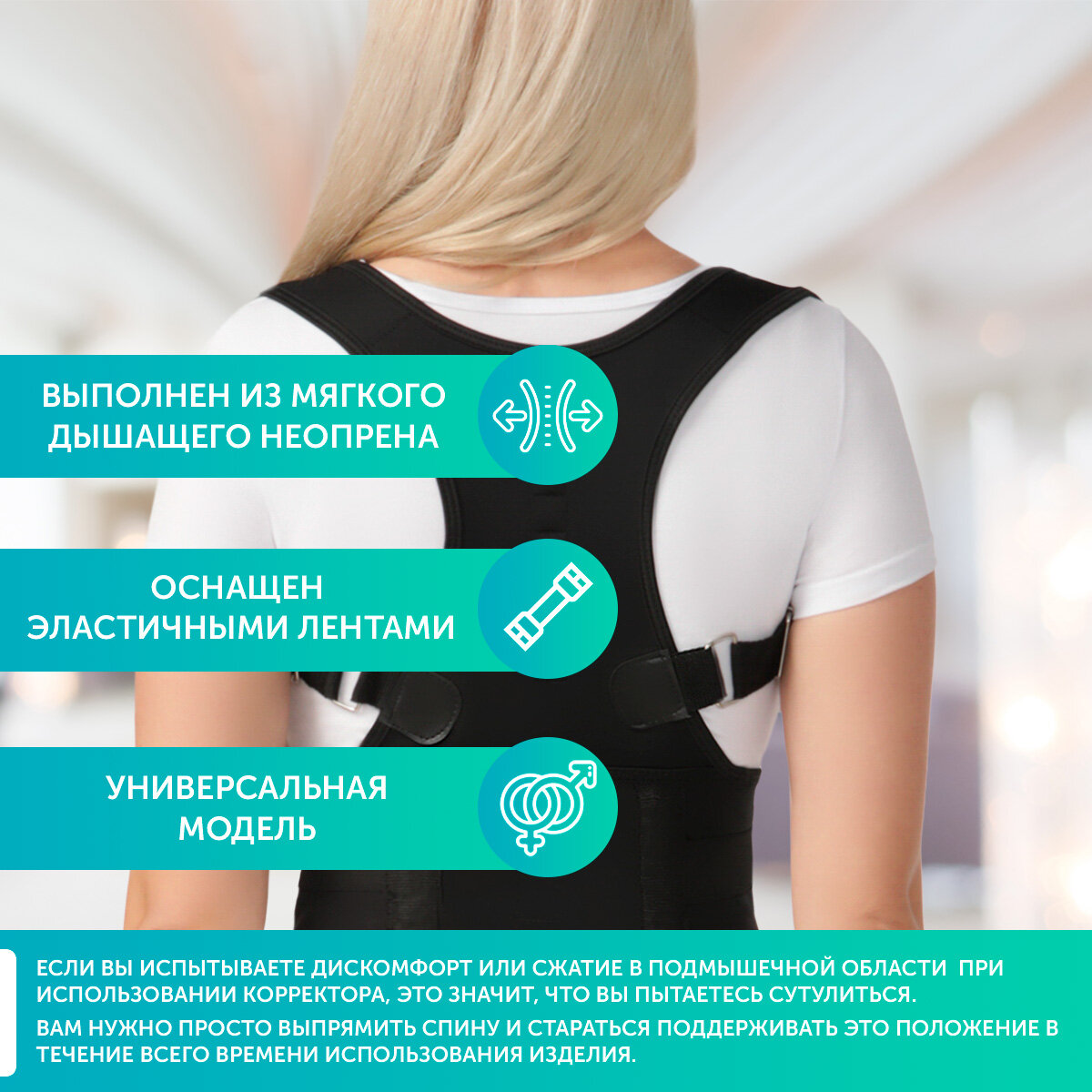 | Показания к применению | поможет избавиться от сутулости, придать телу физиологически правильное положение: расправить плечи, убрать живот и второй подбородок |