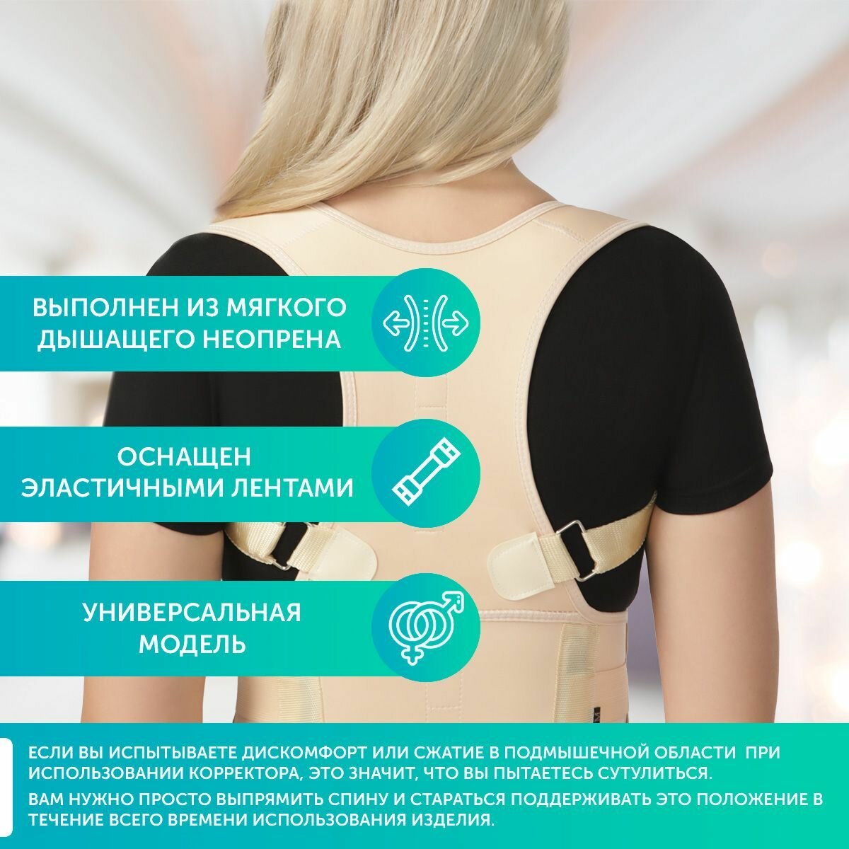| Показания к применению | поможет избавиться от сутулости, придать телу физиологически правильное положение: расправить плечи, убрать живот и второй подбородок |