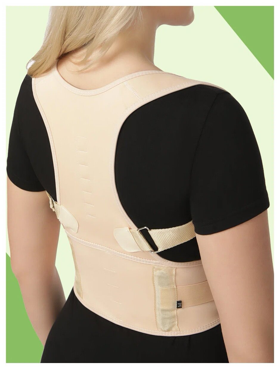 Корректор осанки ортопедический, корсет для спины, бандаж для спины и осанки от сутулости "Здоровая спина", бежевый, размер М