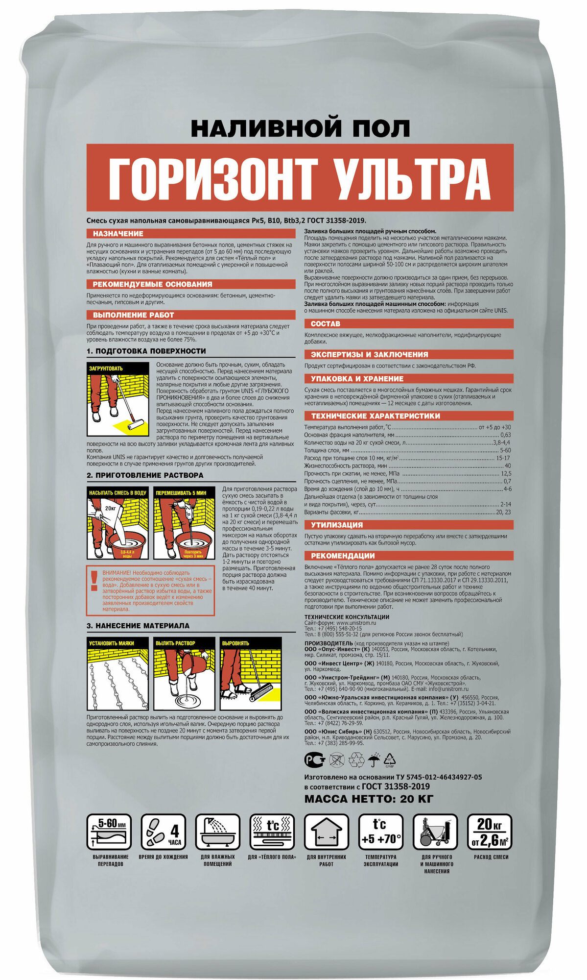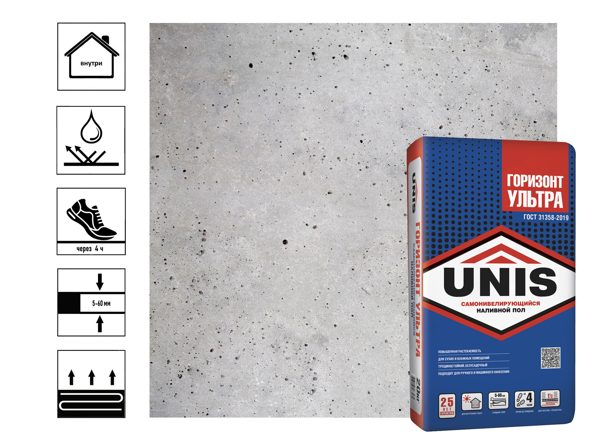 Наливной пол цементный UNIS Горизонт Ультра 20 кг интересное: