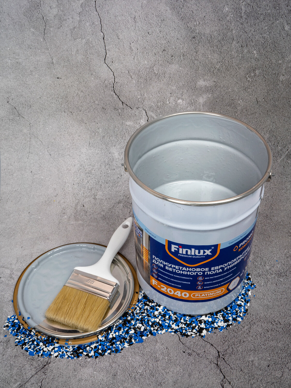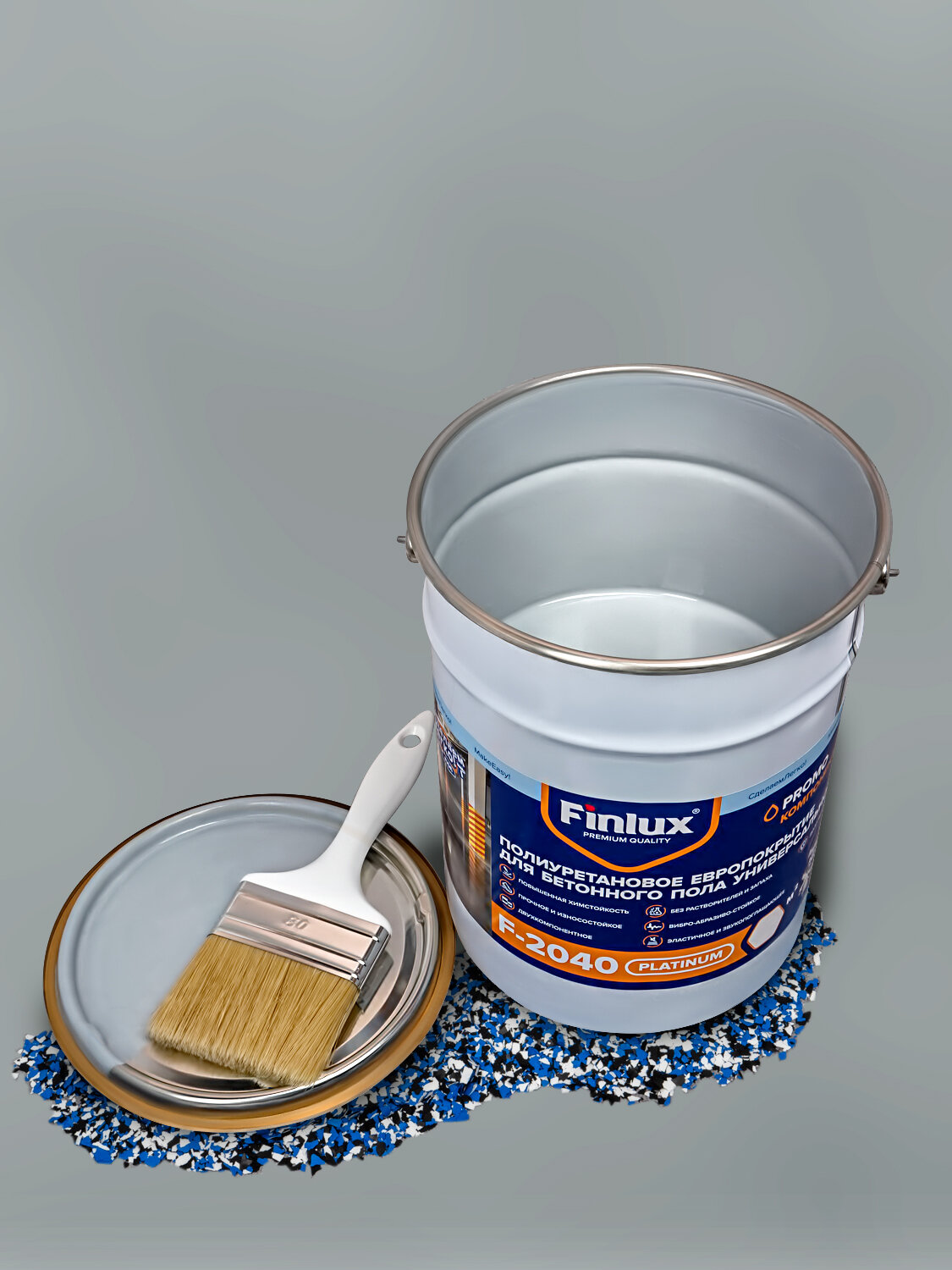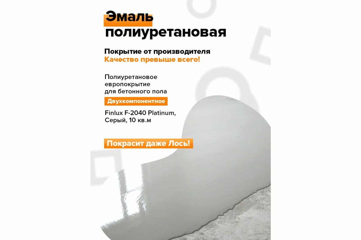 Полиуретановое европокрытие для бетонного пола. Двухкомпонентное. Finlux F-2040 Platinum, Серый, 10 кв.м. интересное: