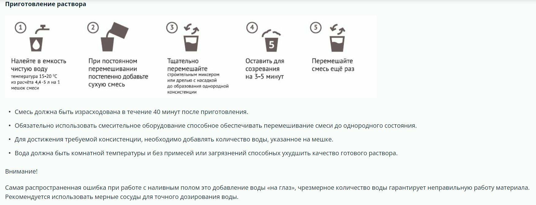 | Жизнеспособность раствора | 24 мин |