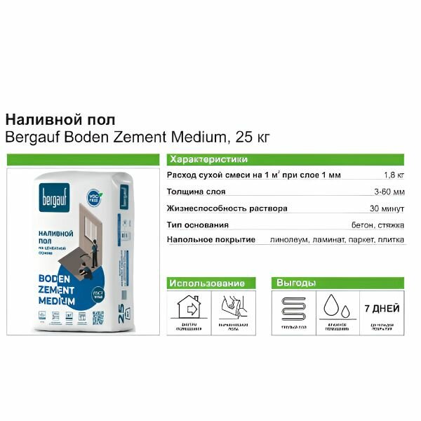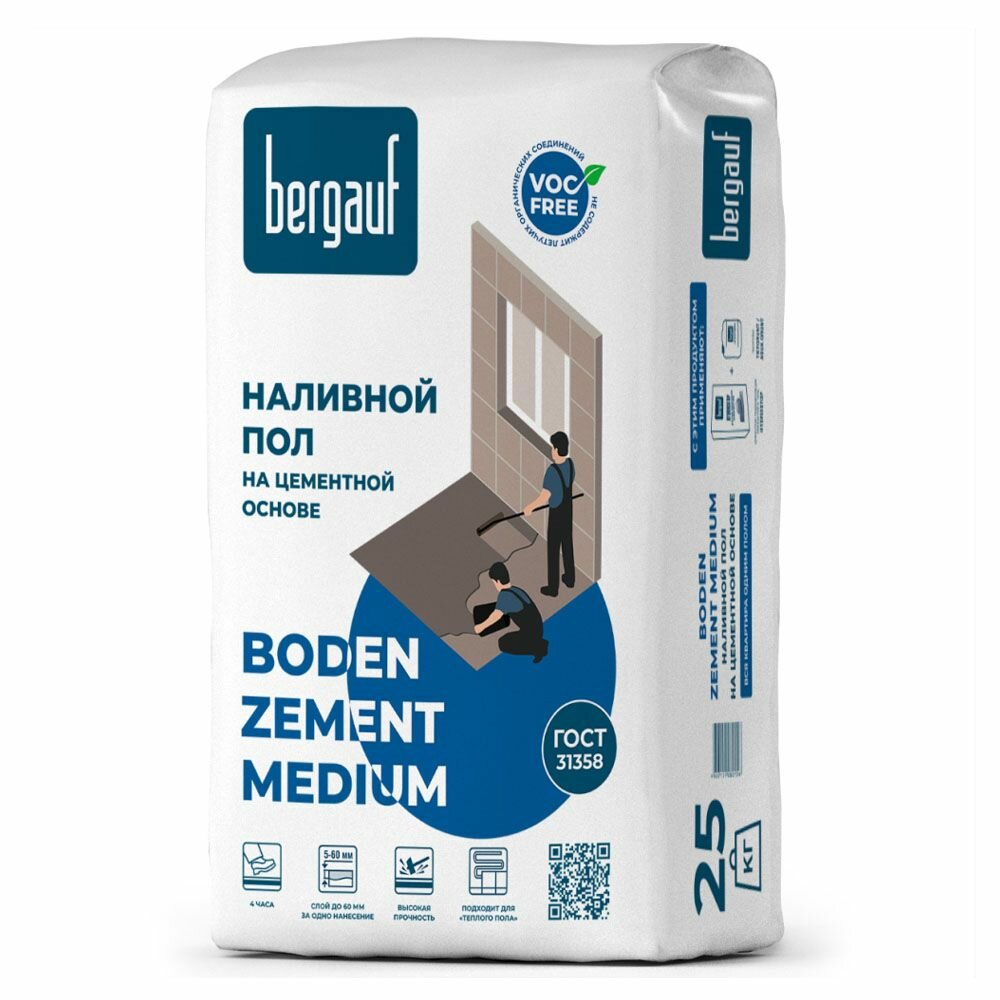 Бергауф Боден Цемент Медиум быстротвердеющий наливной пол (25кг) / BERGAUF Boden Zement Medium наливной пол быстротвердеющий (25кг) интересное: