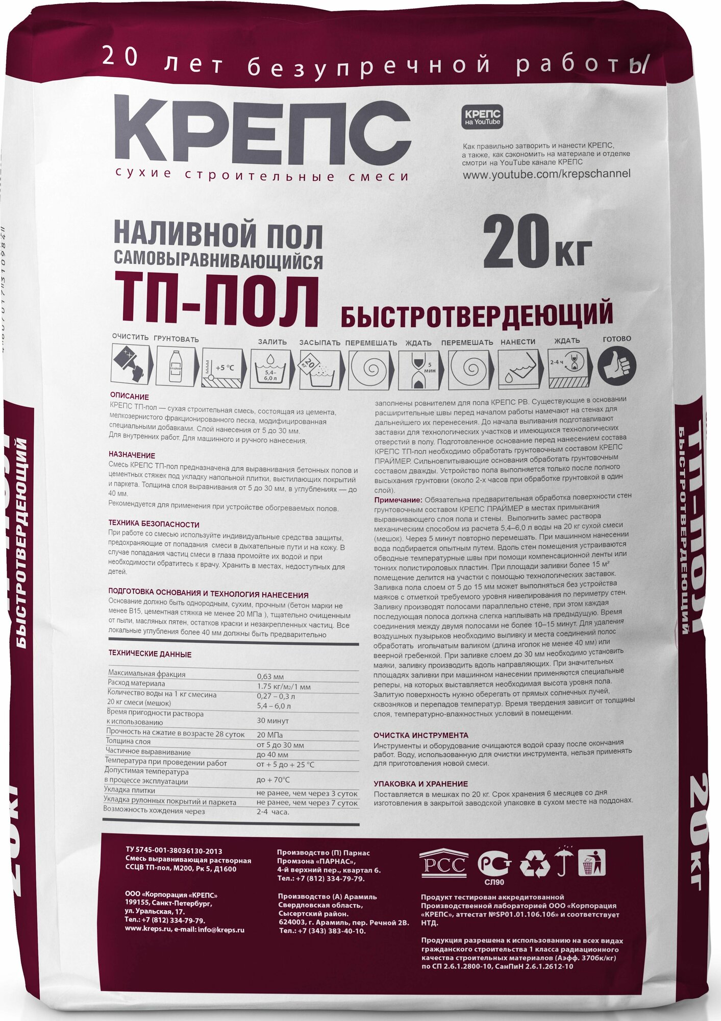Ровнитель (наливной пол) универсальный Крепс ТП-пол самовыравнивающийся 20 кг интересное: