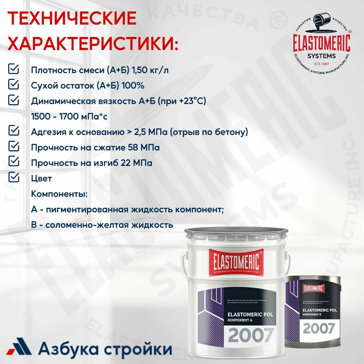 Наливной пол ELASTOMERIC POL 2007, 20 кг (16+4 кг) - двухкомпонентная эпоксидная композиция искробезопасная (финиш), серый интересное: