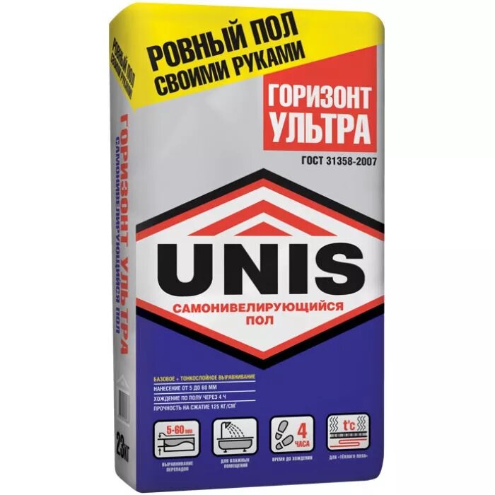 Пол наливной Юнис Горизонт Ультра самонивелирующийся (слой 5-60мм) 23 кг интересное: