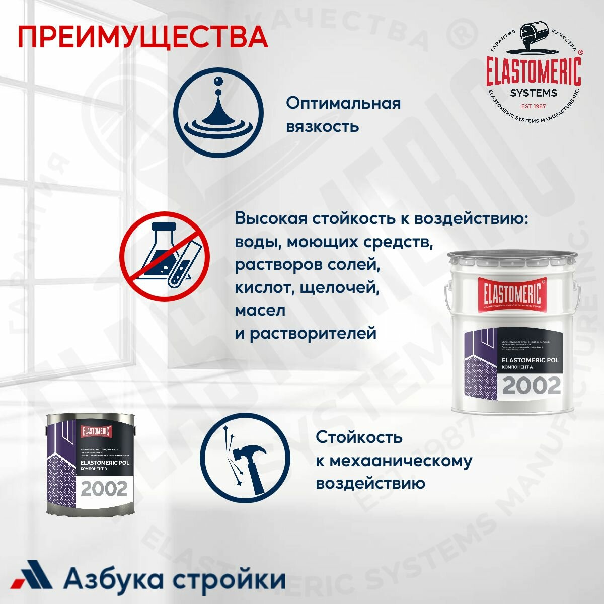 Наливной пол ELASTOMERIC POL 2002, 20 кг (16+4 кг) - двухкомпонентная цветная эпоксидная химостойкая композиция с особой прочностью, темно-серый интересное:
