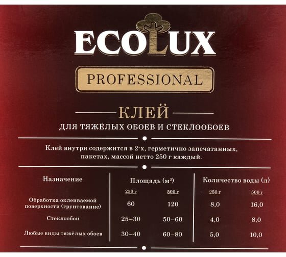 Клей обойный, клей для обоев Ecolux Professional тяжелые обои, Эколюкс, стеклообои, 500 г интересное: