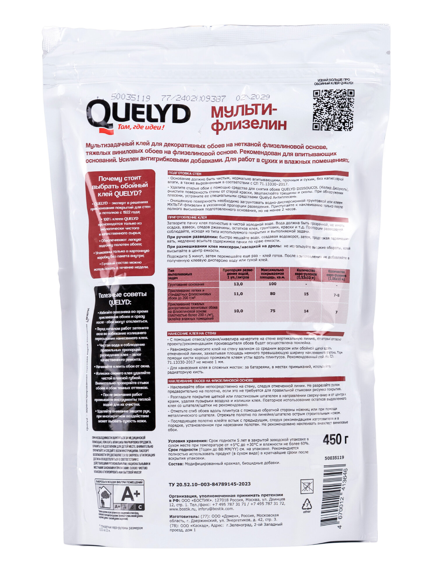 Клей обойный QUELYD мульти флизелин 0,45 кг интересное: