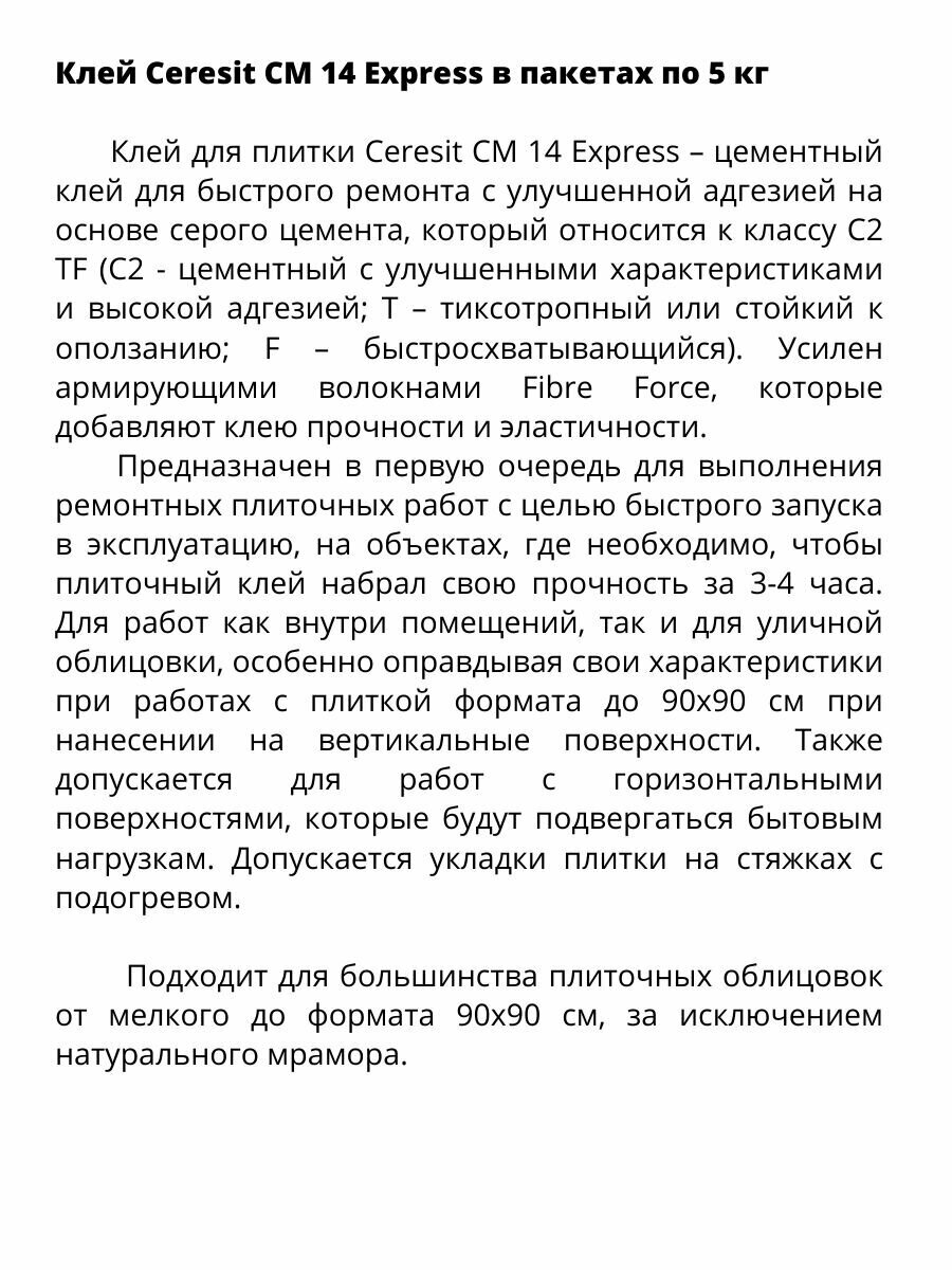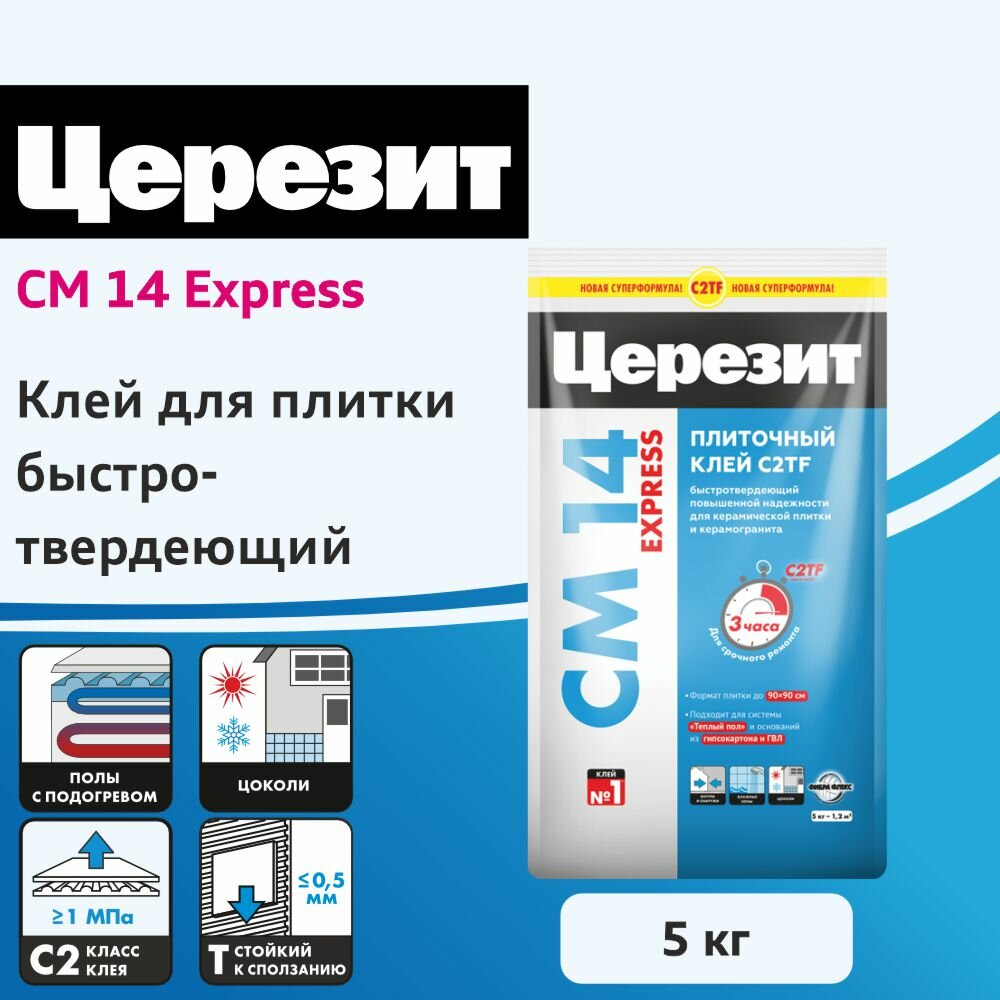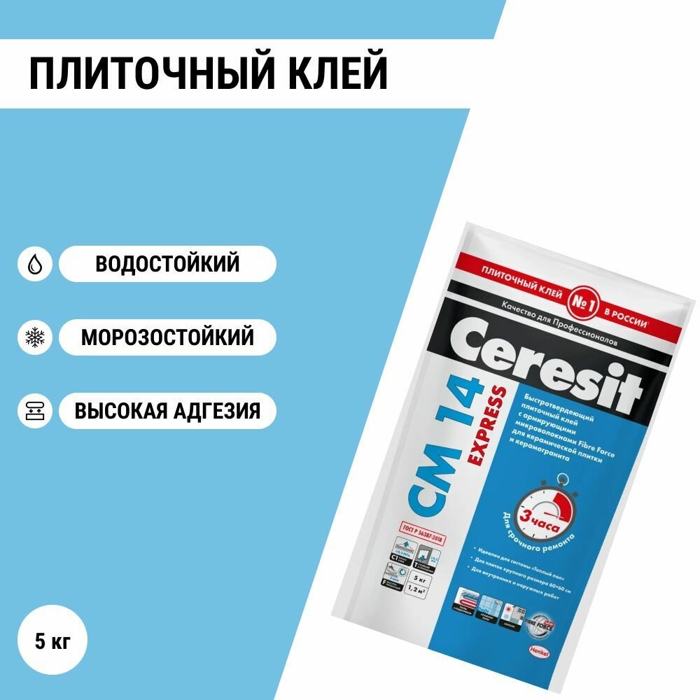 Клей для плитки Церезит (Ceresit) CM 14 Express, быстротвердеющий, 5 кг интересное: