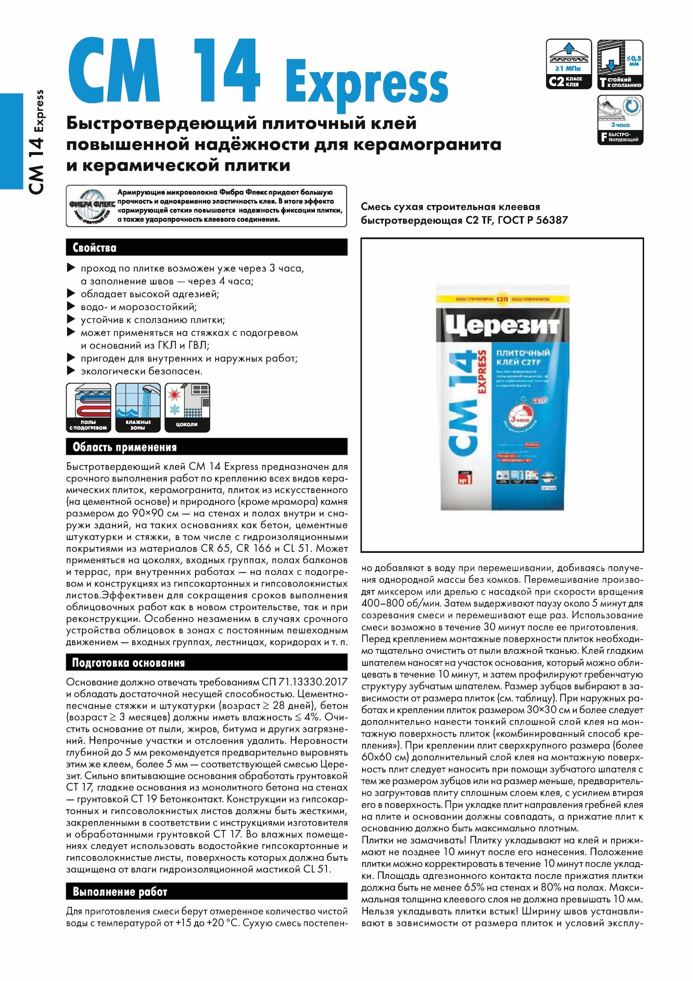 | Дополнительная информация | армирован микроволокнами Fibre Force; класс клея: C2 TF |