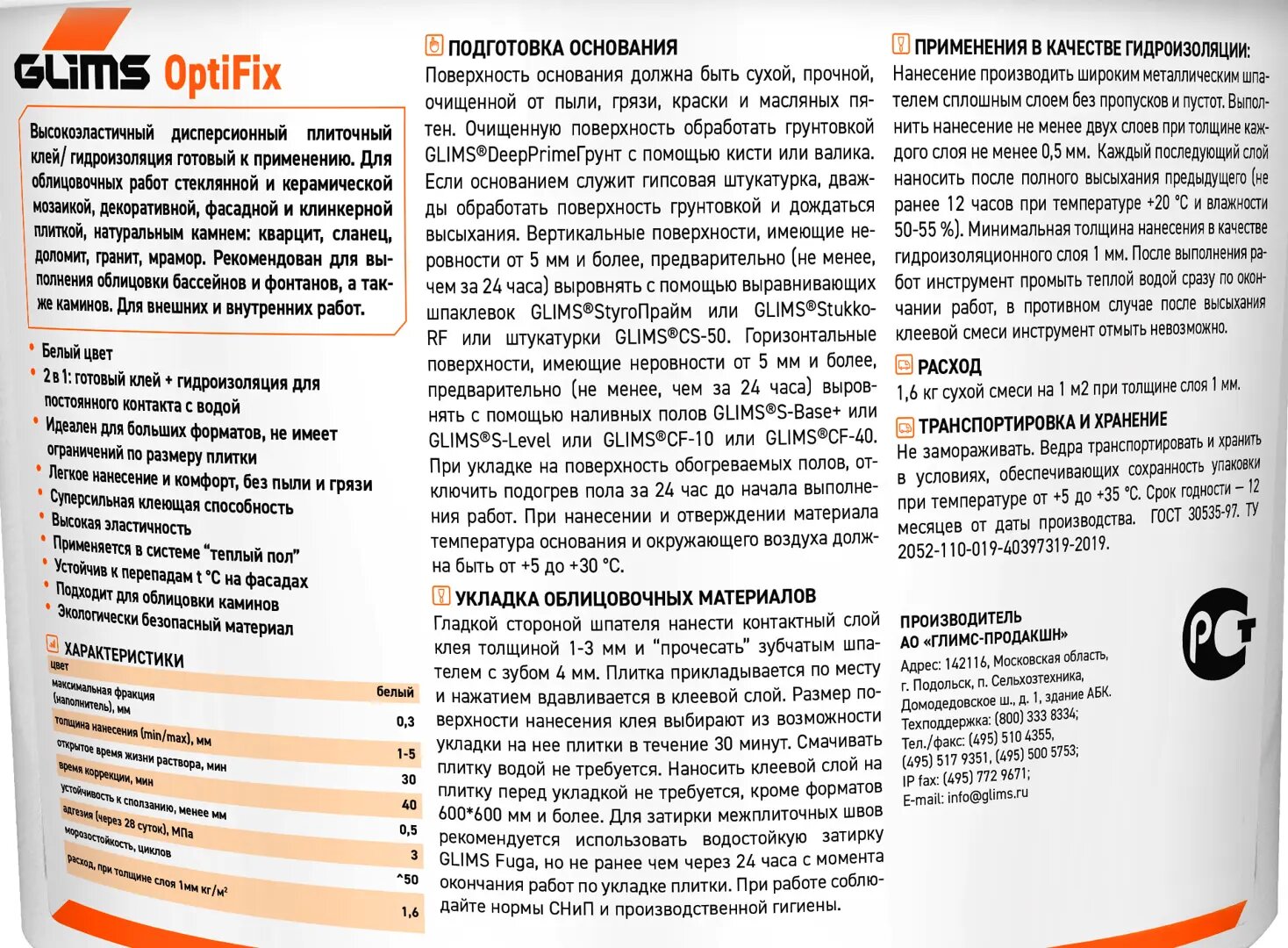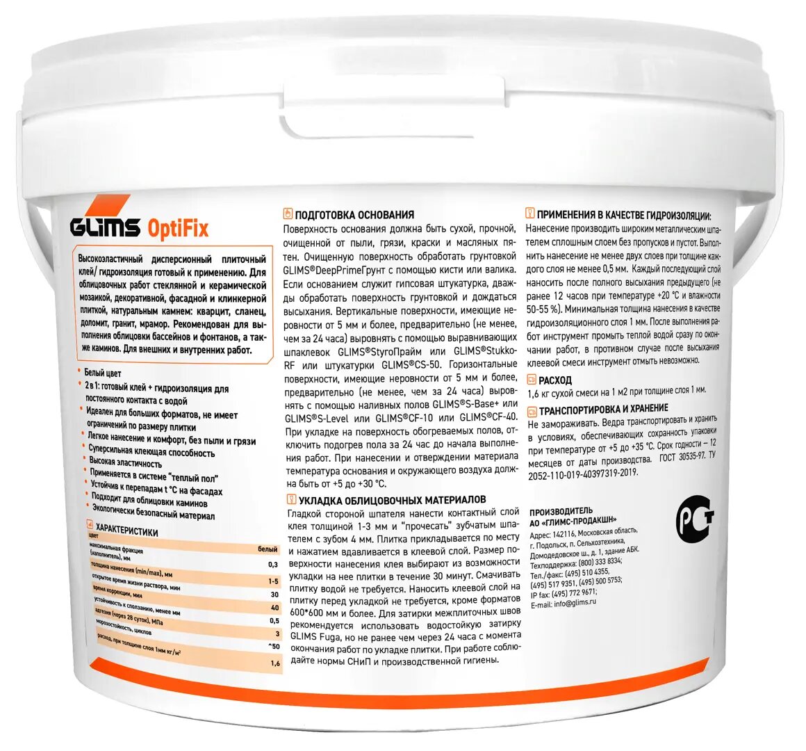 Купить Клей для камня и плитки готовый Glims OptiFix 1 кг