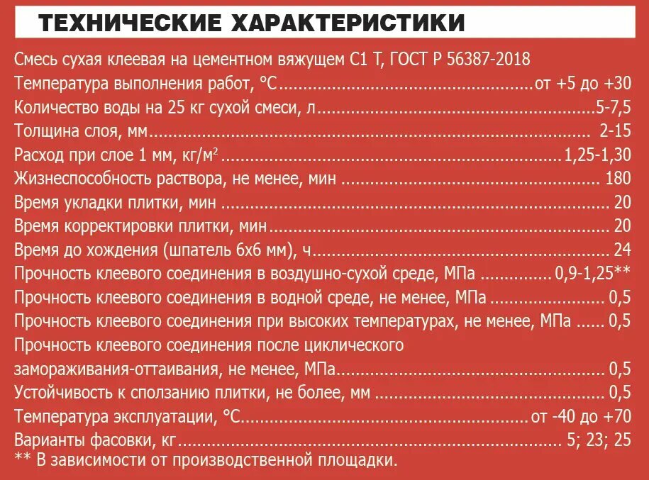 | Расход смеси (слой 1 мм) | 1 кг/м² |