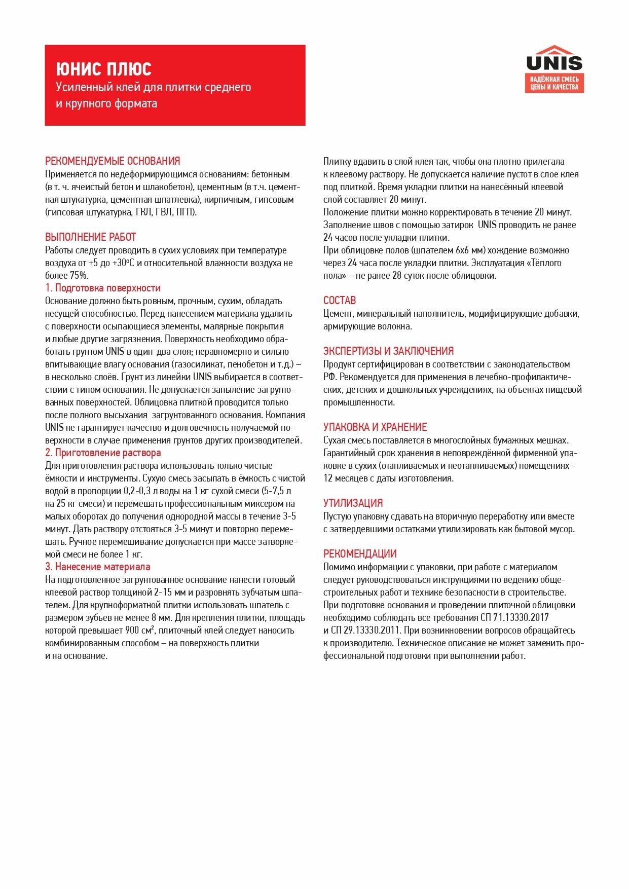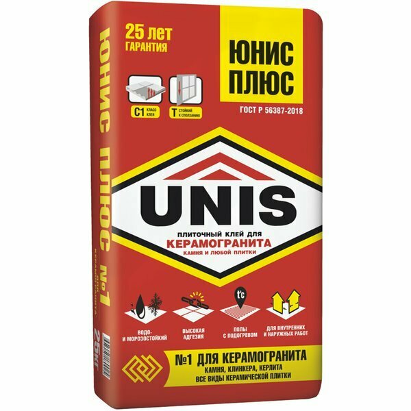Клей для плитки Unis Плюс 25 кг 48 красный мешок юнис (1шт) (65668) интересное:
