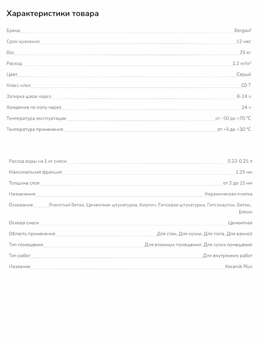 Клей для плитки усиленный BERGAUF KERAMIK PLUS (С0), 25кг интересное: