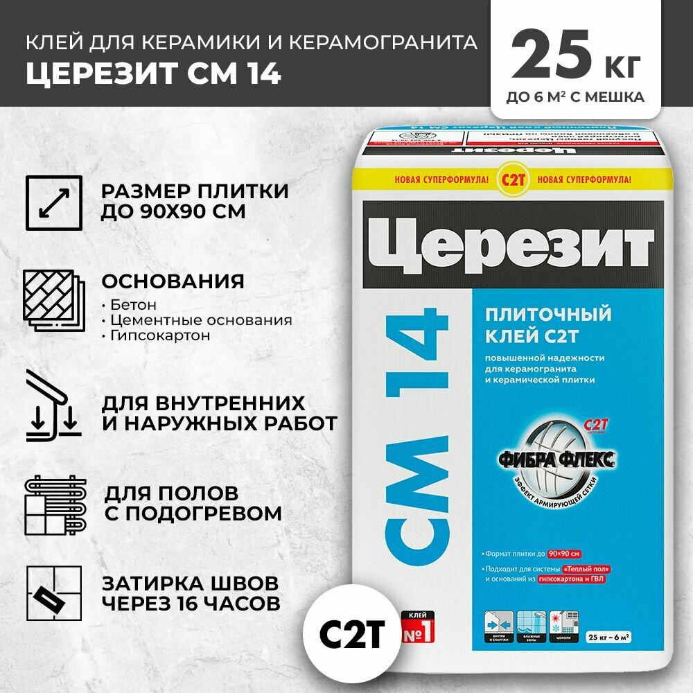 Клей для плитки C2T Церезит СМ 14 25 кг интересное:
