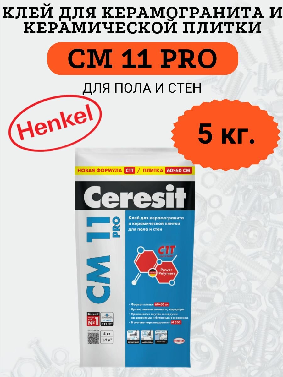 клей для керам.плитки CERESIT CM11 Pro 5кг, арт.2639486 интересное: