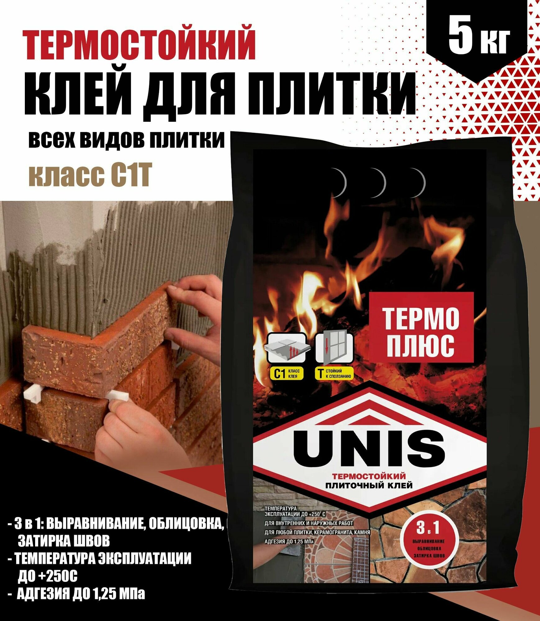 Клей для плитки Unis Термо Плюс 5 кг интересное: