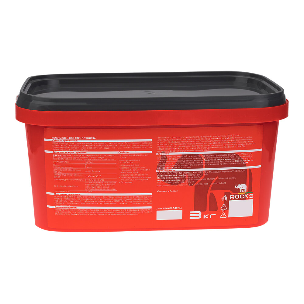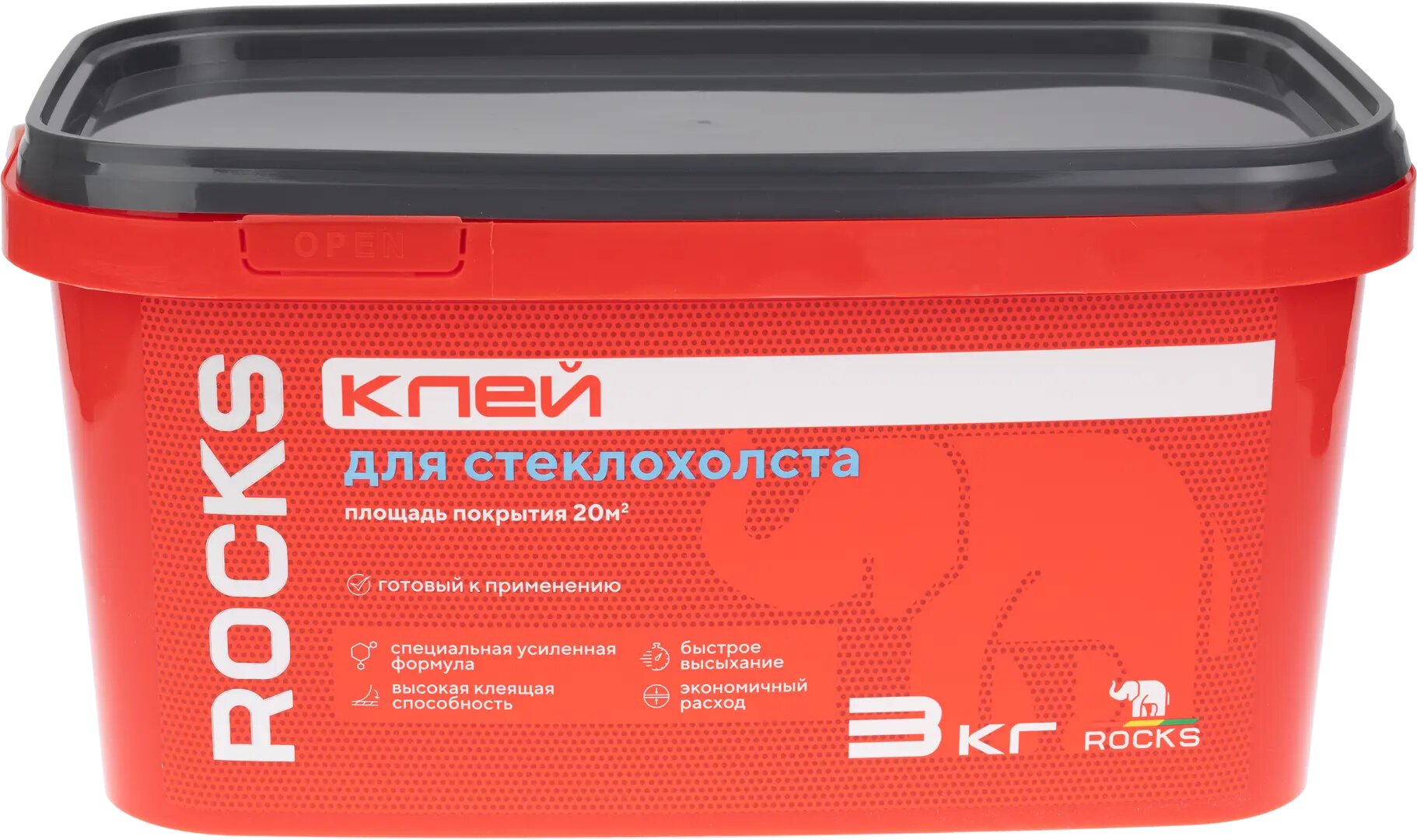 Клей для стеклохолста ROCKS 3кг / Для обоев на стеклотканевой и флизелиновой основе / Готовый к применению