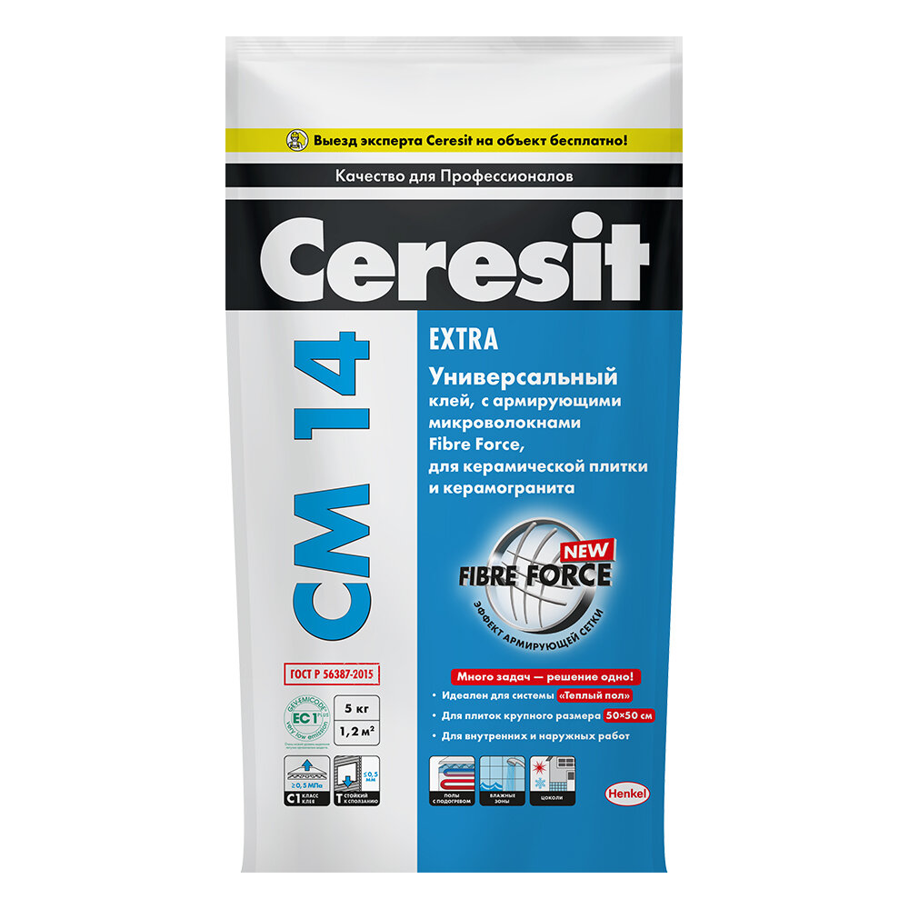 Клей для плитки C2T СМ 14 5 кг, 1 шт. в заказе интересное: